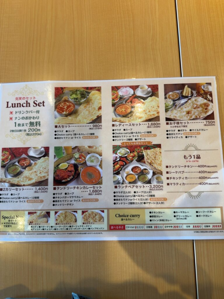 ナンのおかわりができるセットがあるのも嬉しいポイントです。
